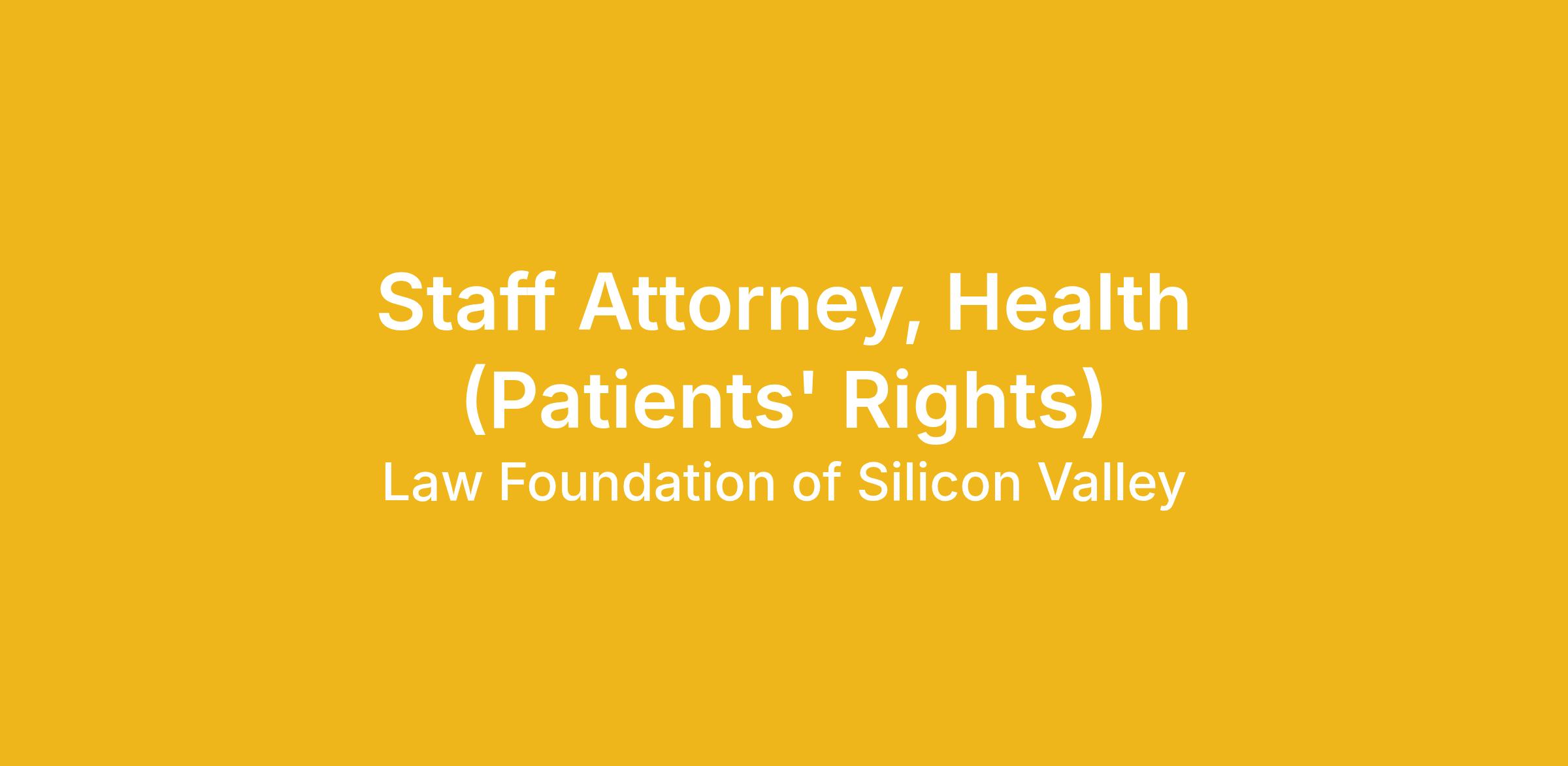 We are excited to offer an opportunity for a Staff Attorney to join our Health Program at Law Foundation. The Health Program provides free legal advice and representation to individuals living in Santa Clara County who identify as having mental health conditions, among other disabilities. We also provide free legal help to people experiencing economic instability and provide services through medical-legal partnerships. We approach our work with a deep commitment to addressing social determinants of health, mental health empowerment, and community-driven advocacy. We welcome new and experienced legal advocates to join our team of dedicated, passionate lawyers as we work together to support health equity for historically excluded residents in Santa Clara County.