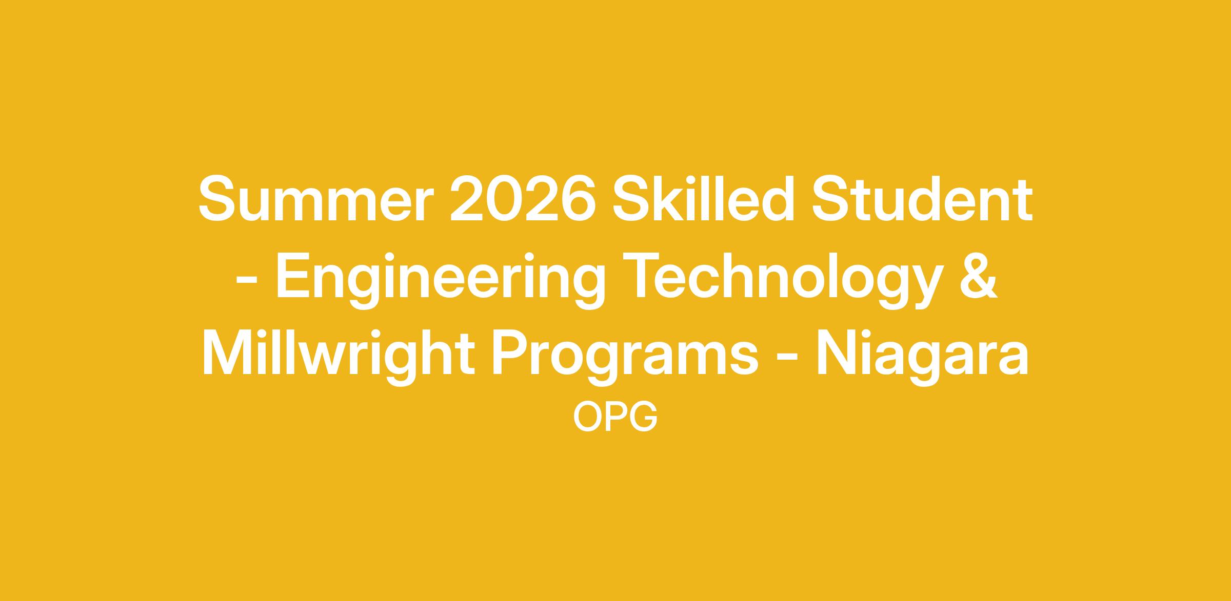 This posting is for multiple skilled trades student positions at Ontario Power Generation (OPG) starting in Summer 2026. Applicants will be reviewed and matched with OPG managers hiring students within their discipline. The job description and accountabilities below are broad and may not reflect the specific duties of each placement. If selected for an interview, you’ll receive details about the specific role, team, and responsibilities.