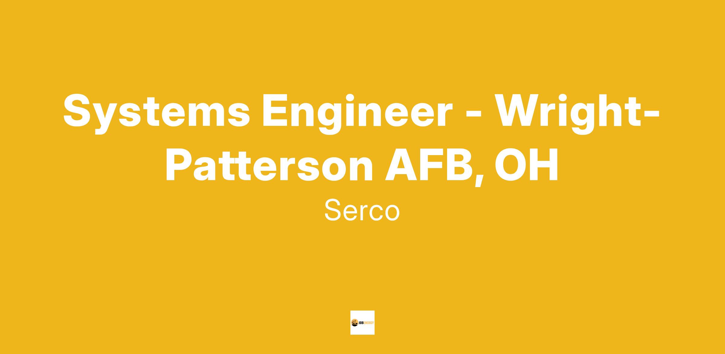 If you want to work on cutting edge Air Force programs, Serco has a great opportunity for you! Serco is seeking a talented System Engineer to join the team onsite at Wright-Patterson AFB, Ohio (No telework/remote work at this location).