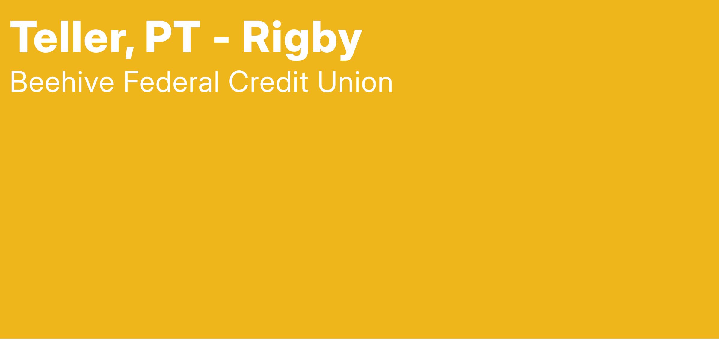 Beehive Federal Credit Union is seeking a part-time Teller for our Rigby Branch located in Rigby, Idaho. This position works Monday-Friday from 8:15 to 1:30, along with Saturday hours as needed. The expected pay is $16.74 per hour, DOE.