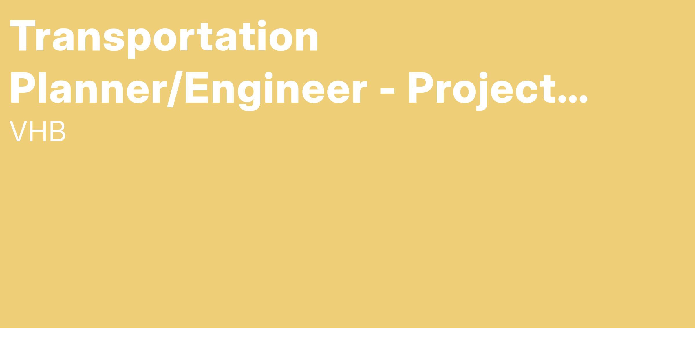 VHB’s growing Metro DC operation is seeking a Transportation Planner/Engineer - Project Manager to join our Tysons Corner, VA Transportation Systems team. The selected candidate will work with VHB’s passionate team of engineers, planners, and designers on a variety of projects across a broad cross-section of markets. This includes partnering with public and private clients at the federal, state, and local levels to improve mobility, enhance communities, boost economic vitality, and balance development and infrastructure needs with environmental stewardship.