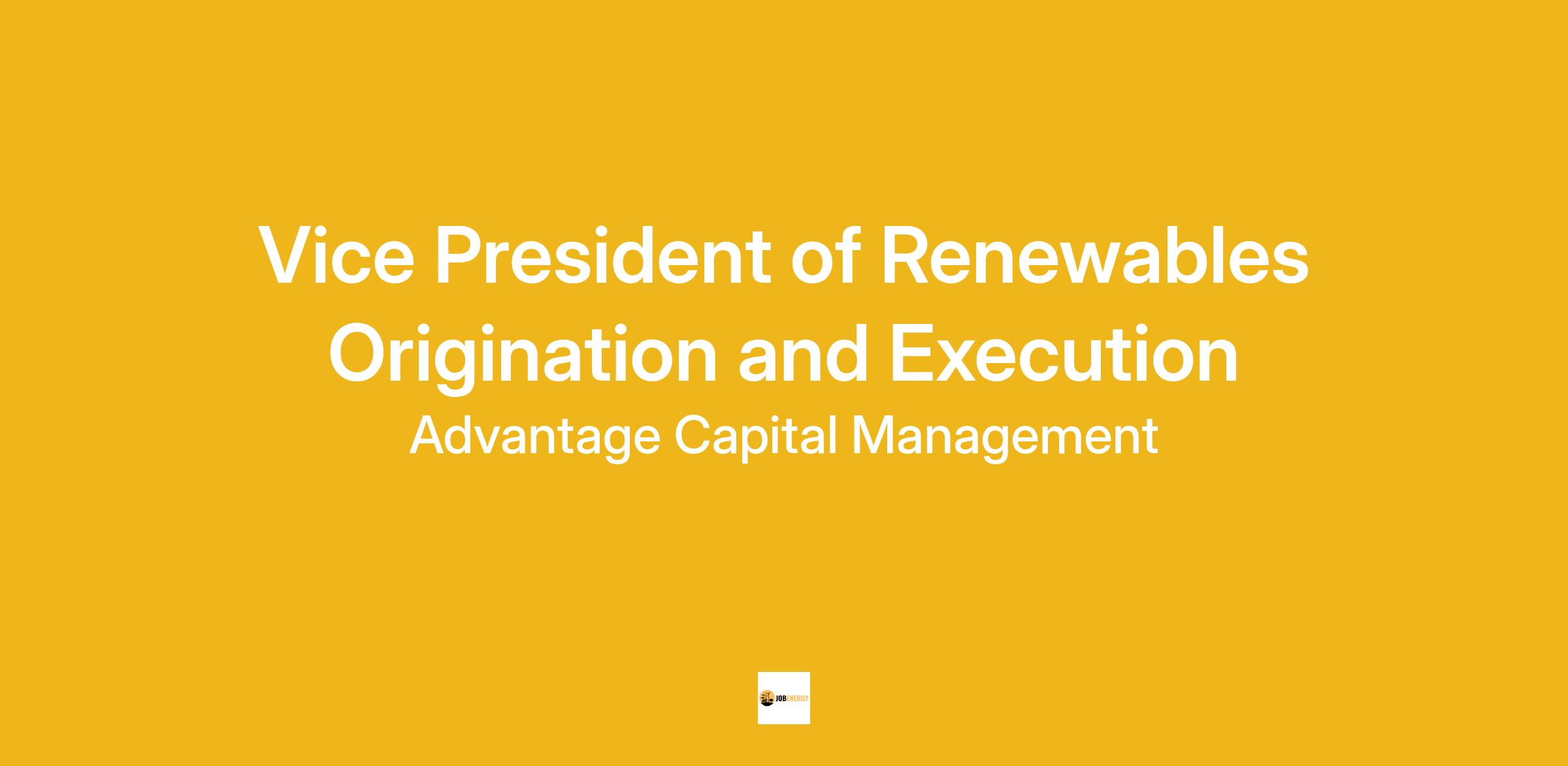Advantage Capital is seeking a Vice President of Origination and Execution to join our renewables finance team. We are seeking a dynamic and experienced professional to expand our efforts in identifying, structuring, and executing renewable energy projects. This role requires a strategic thinker with a deep understanding of the renewable energy market and a proven track record in project finance and development.