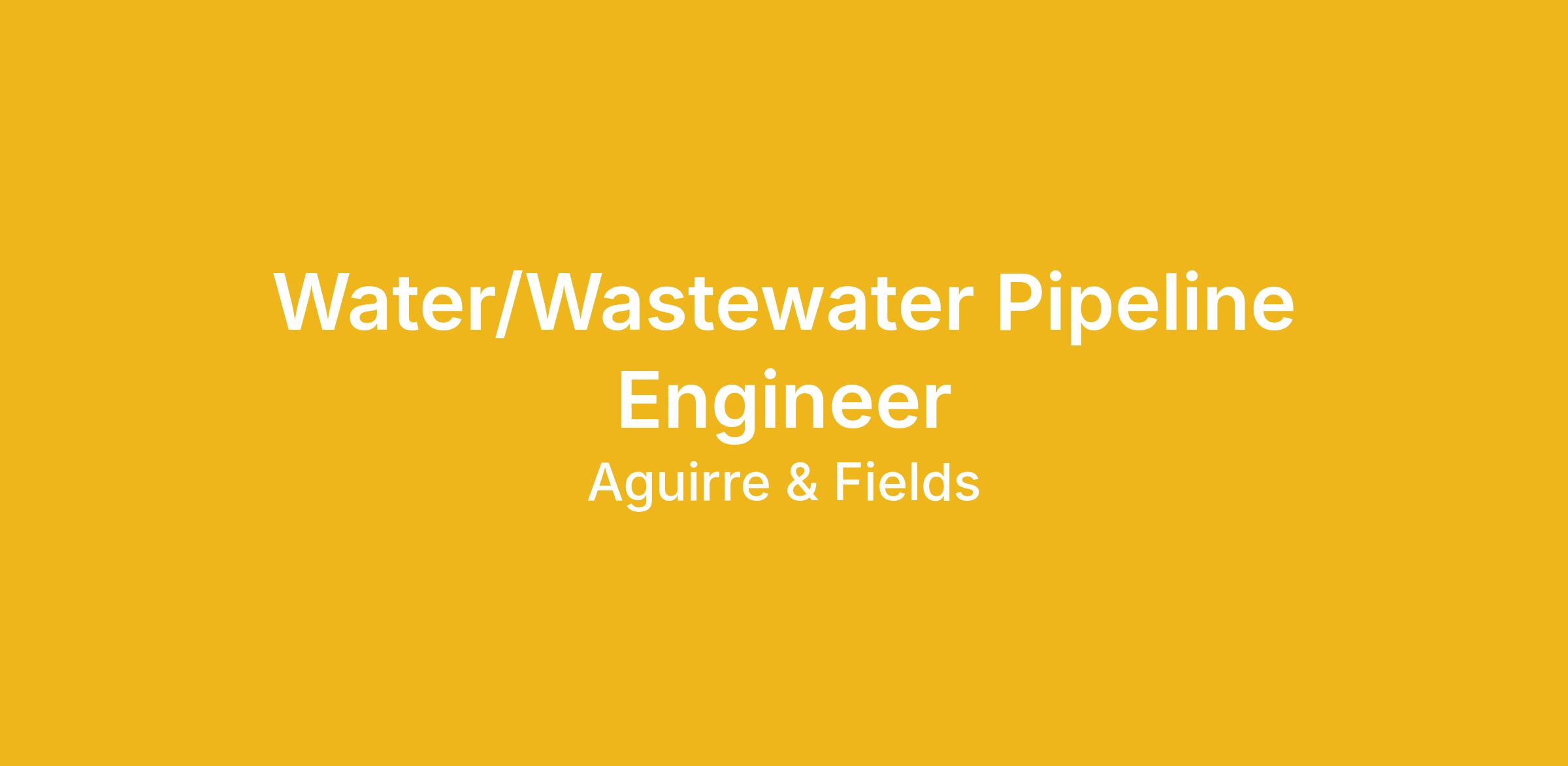 Aguirre & Fields is currently seeking a motivated Water/Wastewater Pipeline Engineer to join our growing Water Resources team. This is an excellent opportunity to take the next step in your career while working on meaningful municipal water and wastewater infrastructure projects.