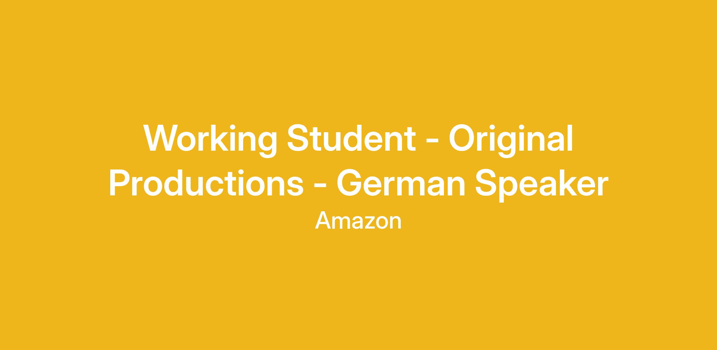 As Working Student – Originals Production DE, you will...